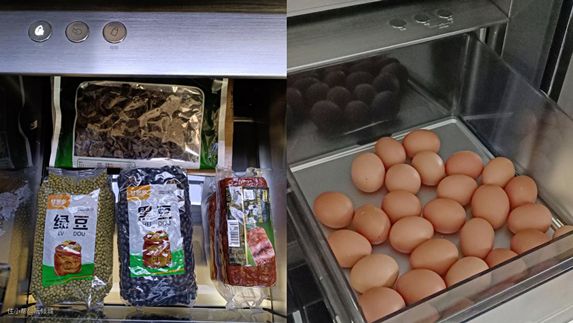 倾城在这个区域放了刚刚采购的黑豆、绿豆、干木耳、火腿和鸡蛋哦,保存起来很安心!