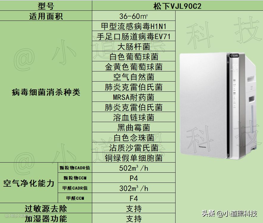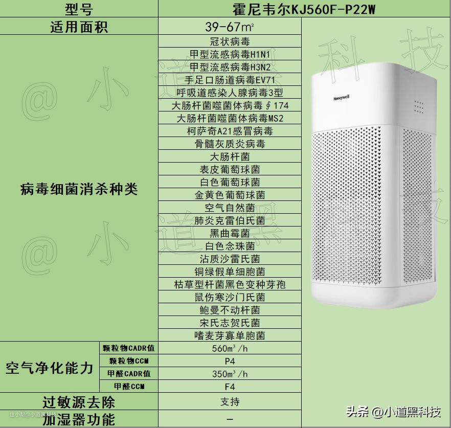 优势:霍尼韦尔作为全球500强高科技企业,产品技术能力过硬,综合实力强。结合上表可知其消杀病毒细菌的种类是最多的,如果你不知道你家需要消杀哪些病毒细菌,选择它准没错。