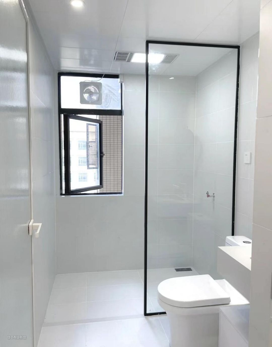 当然,半墙隔断,干湿分区的效果要差很多,平时洗澡还是会有水溅到外面,挡个马桶,不给马桶上溅水倒还行。