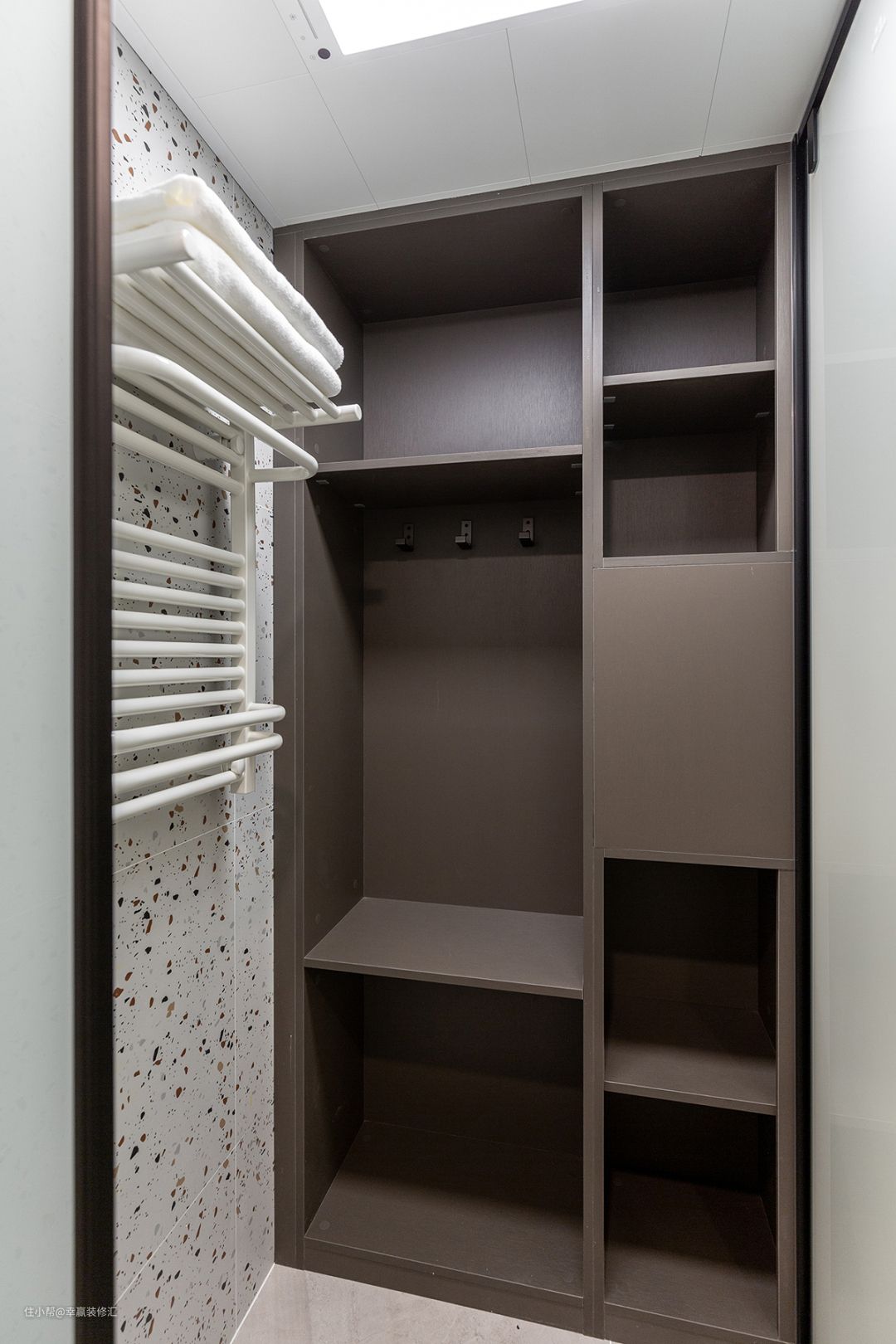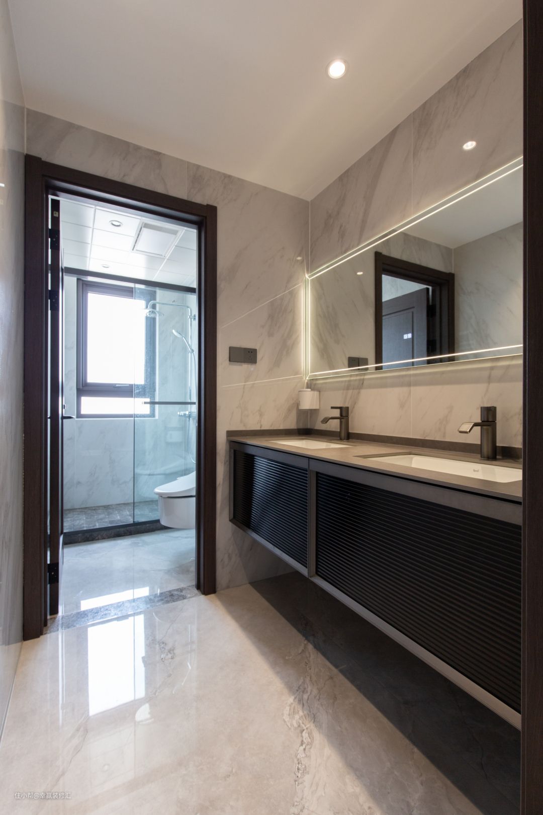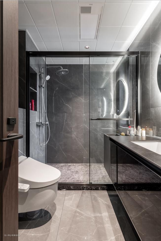 洗脸区外移:卫生间不设置洗漱区,而是将洗漱台移至外面,在里面将淋浴区和如厕区单独划分,这样做更显宽敞整洁、视觉感也会明亮。