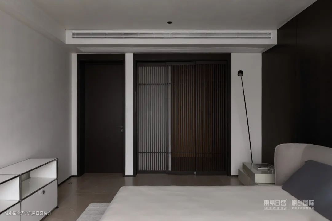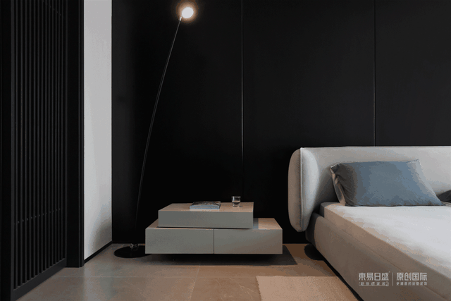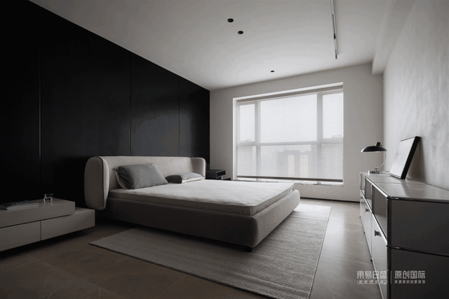 卧室以黑白灰为主调,极简设计让喧嚣与浮躁自然褪去。光影、天气、自我与空间建立起更深层次的对话,无垠的自由中,享受只属于自己的宁静与惬意。