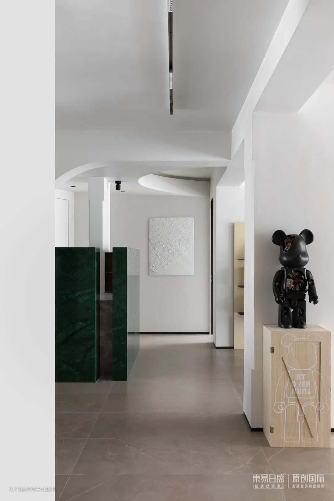 秉持开放共生的内在逻辑,环绕玄关而生的动线设计,连接起客餐厨整体公共空间,并通过硬装造型与软装调性加以区分,空间的流动性应运而生。开放与独立,静谧与休闲,伴随居者的内心需求变化与光影的轮转,交替出现。