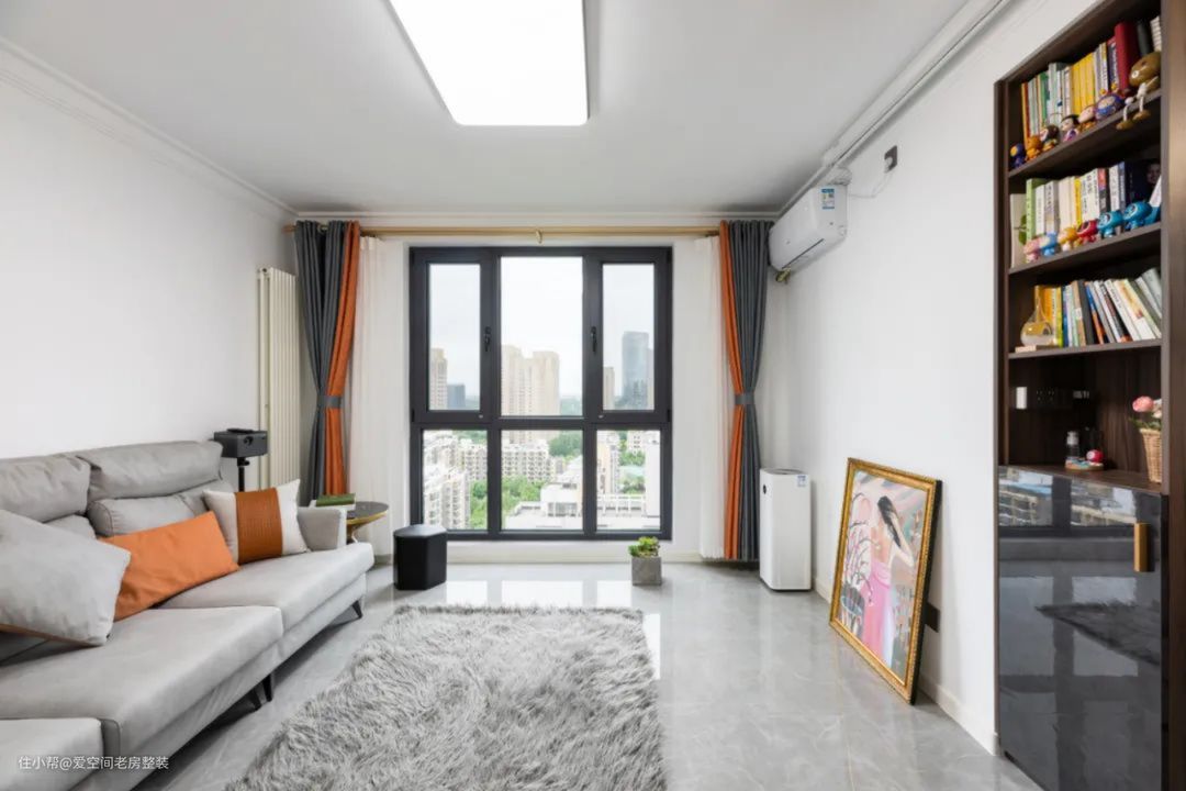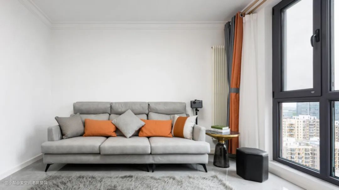 布艺沙发松软舒适,材质耐水洗,可以随时清洁。上面还有橘色的抱枕点缀,丰富空间色彩。
