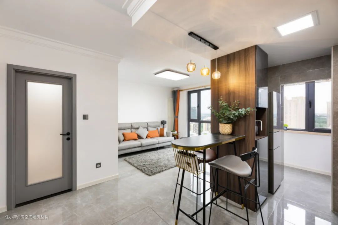 极简风并不是大家经常会联想到的黑白灰,整体呈现清冷氛围。它也可以是温馨治愈的。下面这套将不常用的家具去除或者变小,形成一个更开阔的公共空间。