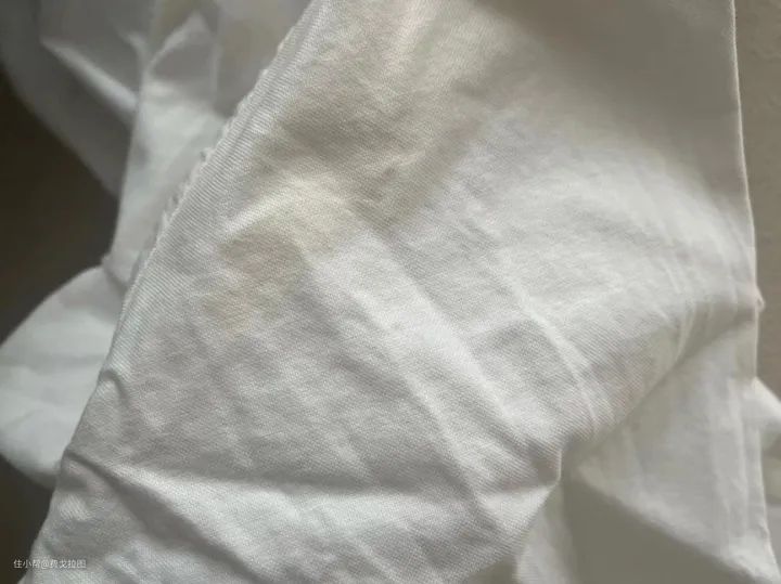 接下来是氧化发黄后的衣物对应的清洁实验,其实我都已经不知道扔了多少件这样的衣服了,普通清洗根本洗不出来,无奈只能够丢掉。