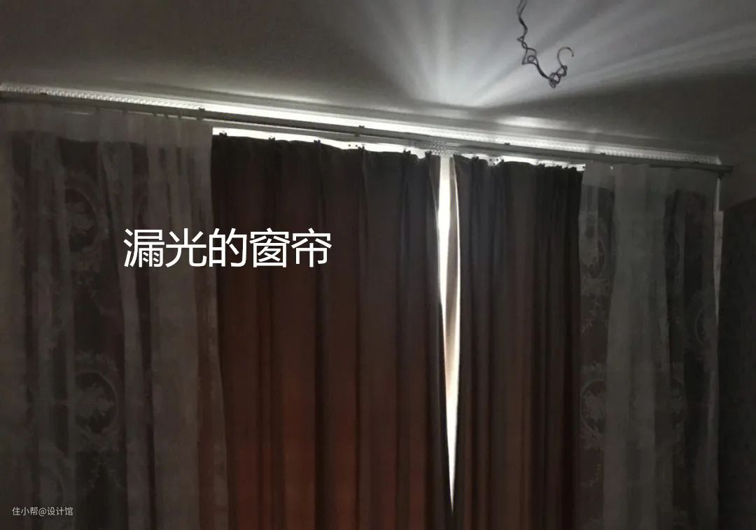 卧室是睡觉休息的空间,如果你对光线敏感的话,就要注意两侧与顶部的漏光问题,为了规避卧室窗帘漏光问题,要做到——顶部要有窗帘盒或帘头;两侧窗帘要贴墙,并要比墙体更长。