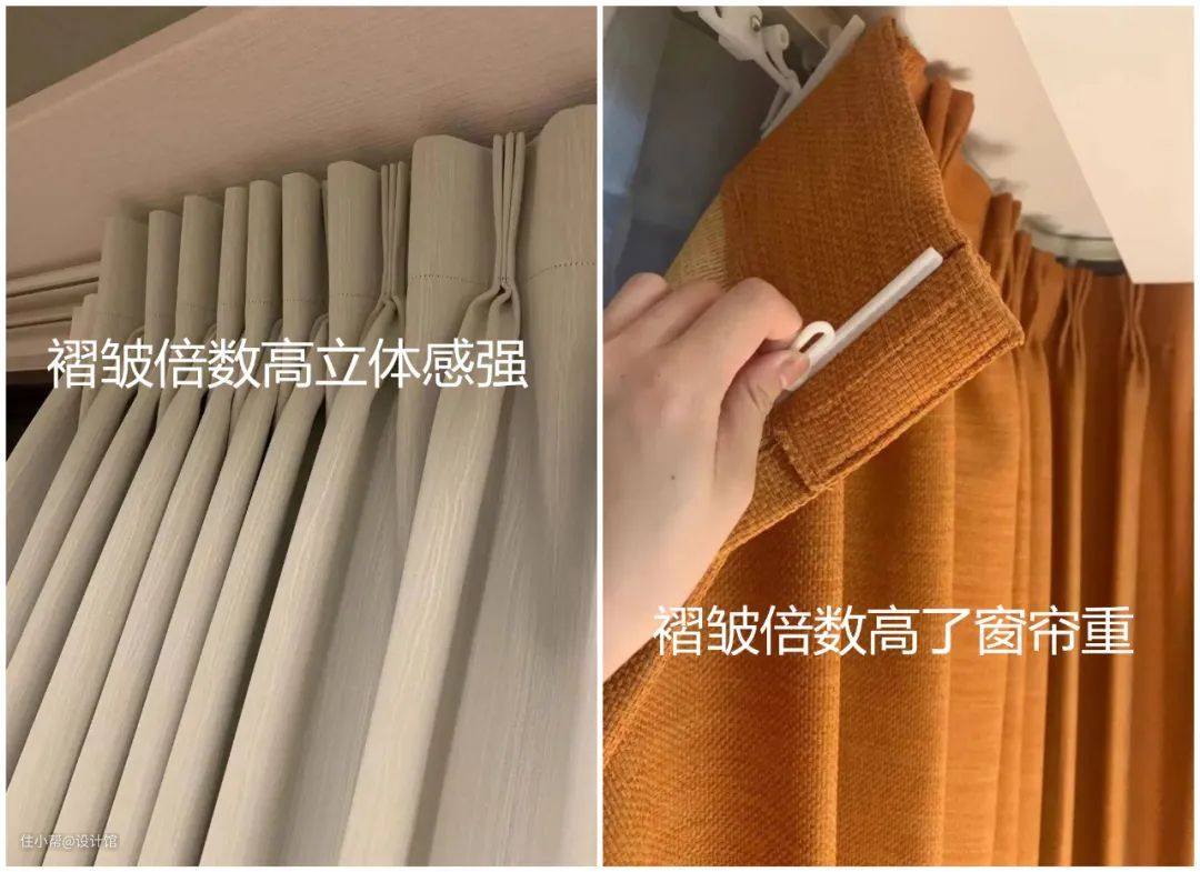 ▲窗帘布的褶皱倍数1.5-2倍最好。