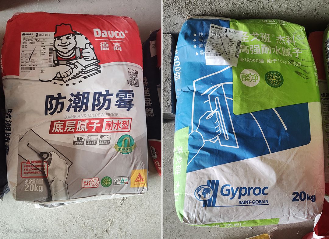 现在市面上销售的多为成品腻子主要由无机胶凝材料和无机填料组成,无需再添加建筑胶水。直接兑水使用更加环保。购买成品腻子时,如果环境尽量选择耐水型腻子。这种腻子一般耐水汽侵蚀,粘结强度更高使用寿命更长,而且在装修市场它并没有比普通高强腻子贵多少。