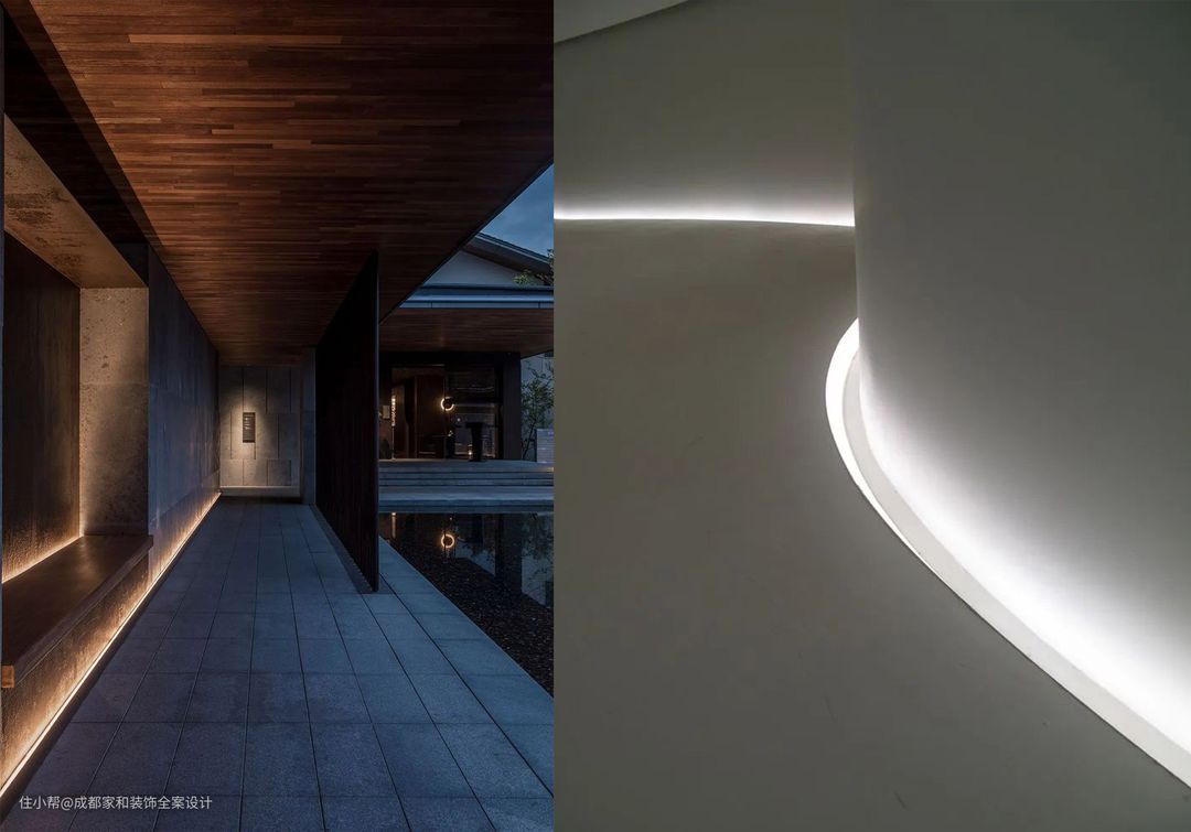 墙面灯带能够勾勒出造型轮廓,不管光线朝哪个方向一定要留出足够的空间让灯光达到“晕染”的效果。