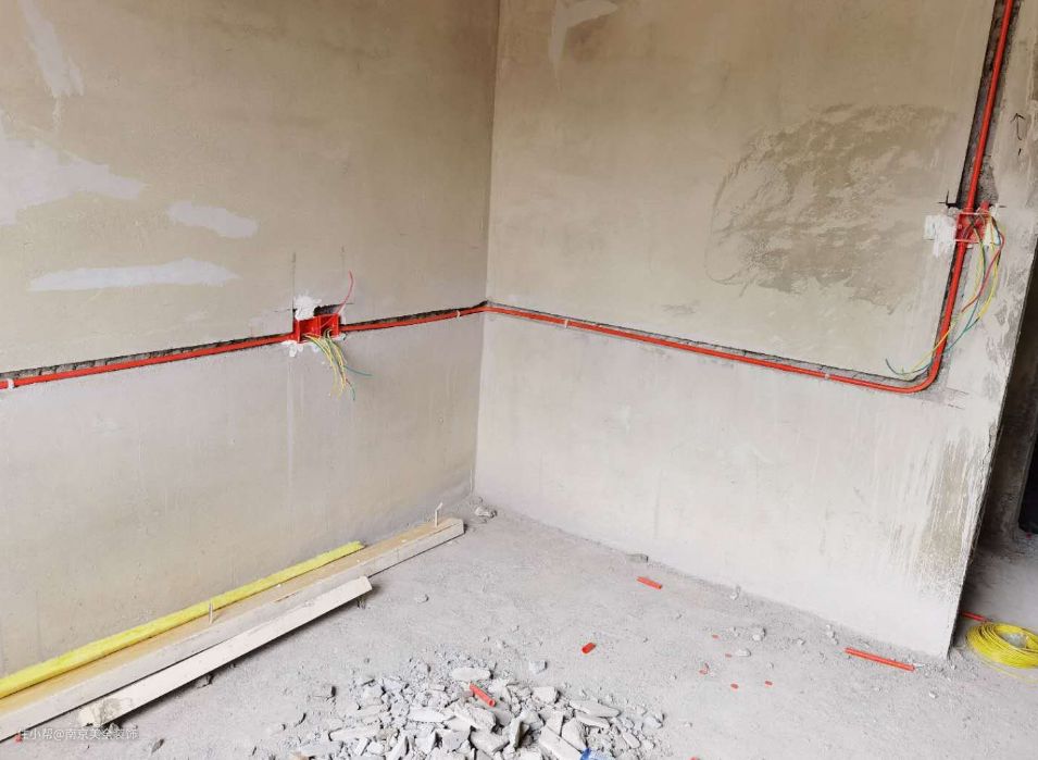 走墙:走顶和走地都会有竖直的走墙部分,全部走墙不太常见,卫生间走墙还可以理解。但是大面积的房子电路很多,全部走墙,墙上开槽太多,后期要做很多防止乳胶漆开裂的措施。