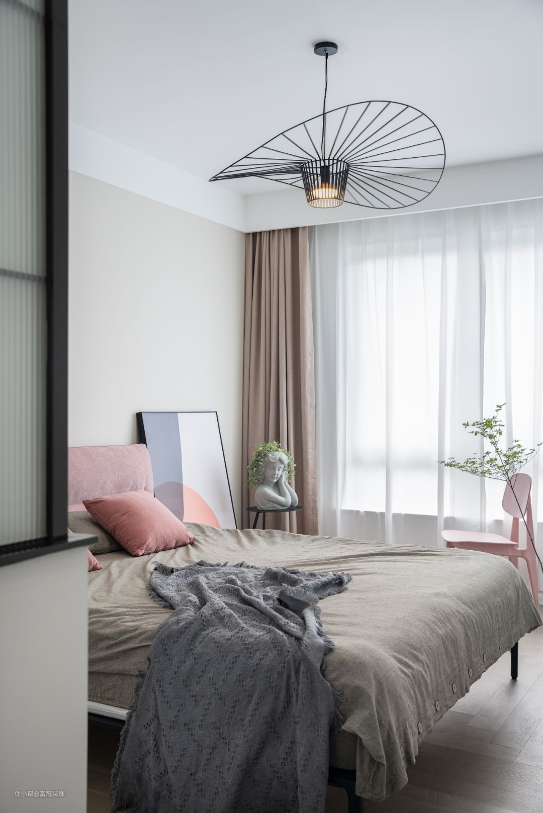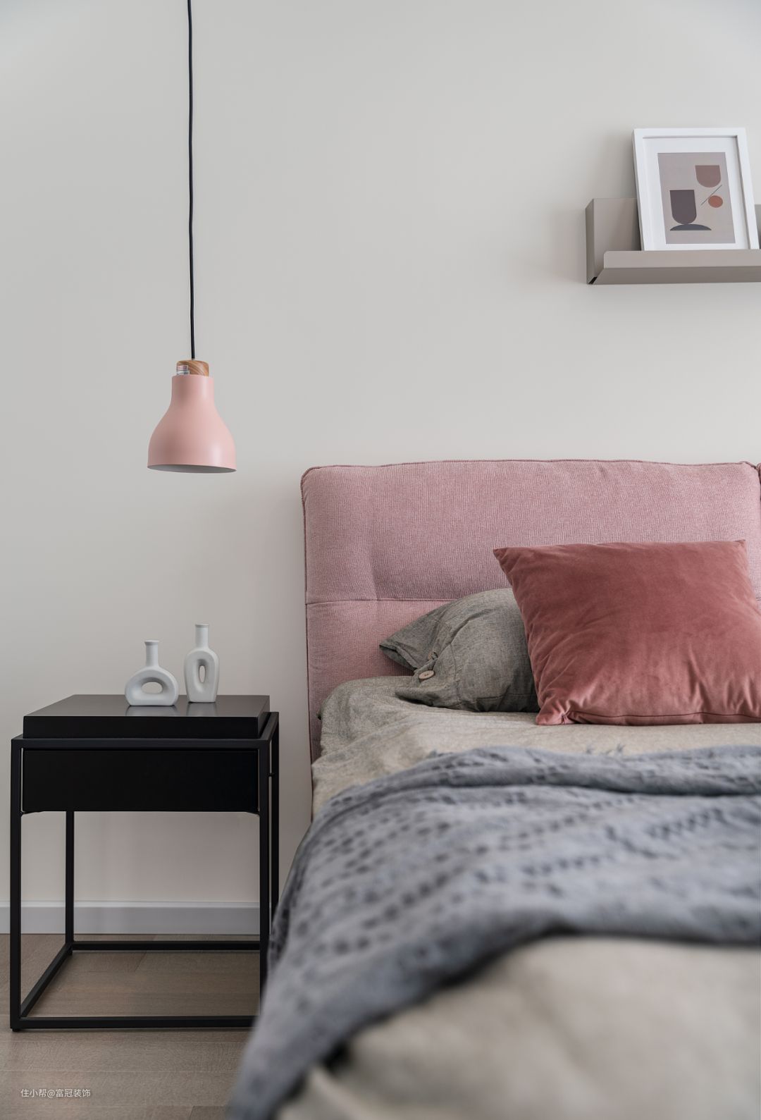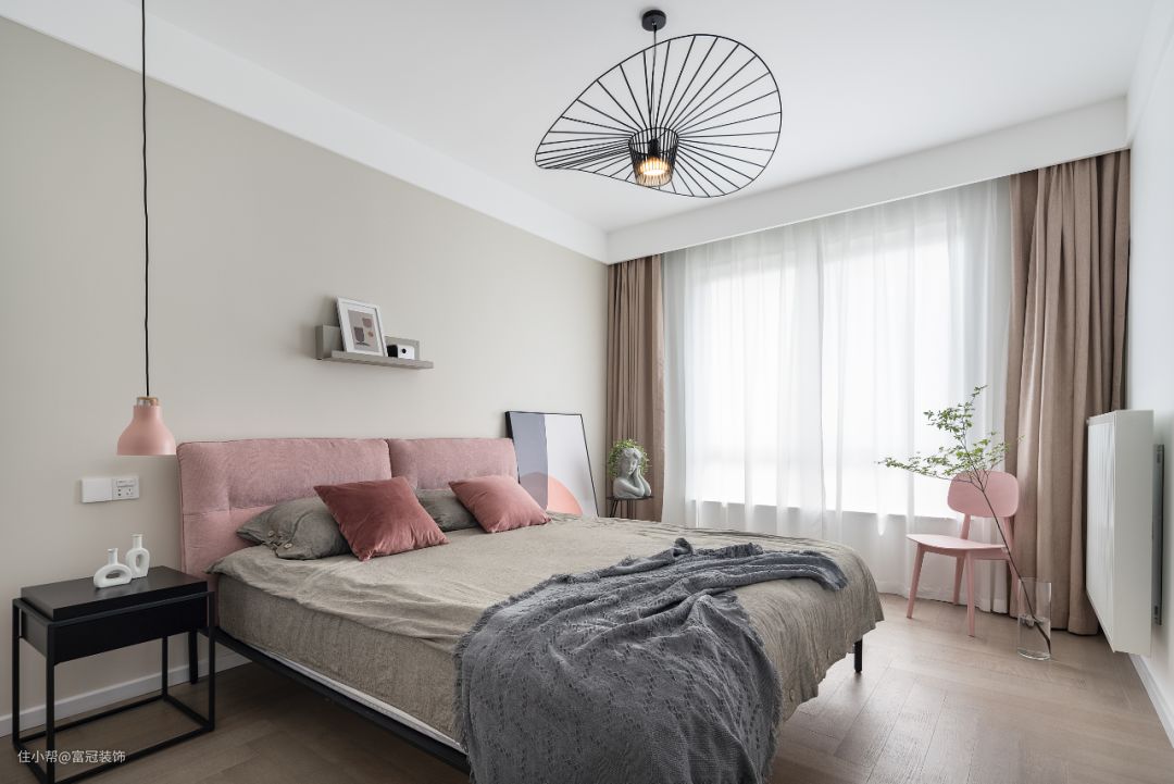 主卧以低饱和度灰色调为主,营造出宁静浪漫的氛围。