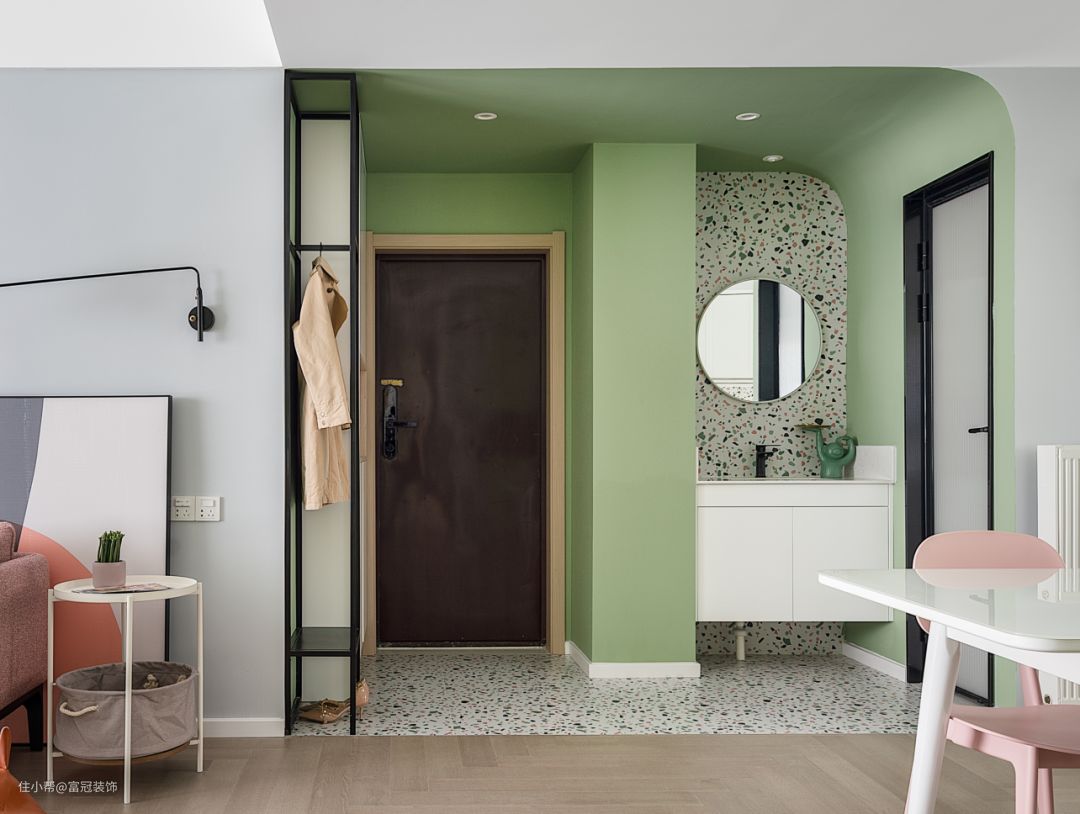 110㎡三居,鳄梨绿+水磨石,打造温暖而独特的家