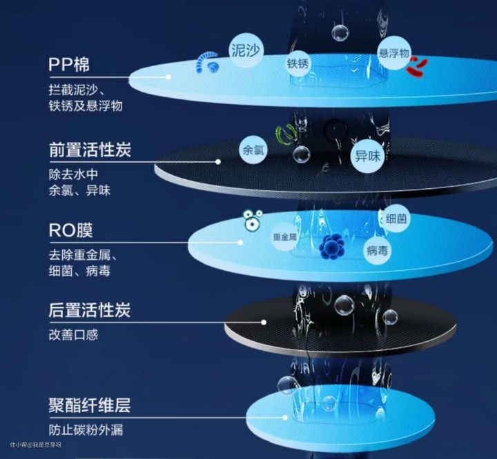 双芯五级精滤。我们都知道,净水器最大的作用就是通过过滤让水更干净,而这一切跟过滤芯的过滤能力、过滤的级数是直接的关系的。海尔鲜活水净水器HRO10H11-2U1为了更好的过滤,采用的双芯、五级深度过滤。PCB复合滤芯+RO反渗透滤芯。能够有效滤除水中的有机生物、微生物、化学残留、重金属、细菌等有害物质,而且滤芯更大,滤料更足,寿命更长。净化更久。五级深度过滤的第一级PP棉可以拦截泥沙、铁锈及悬浮物;第二级,前置活性炭可以除去水中余氯、异味;第三级RO膜可以去除重金属、细菌、病毒;第四级后置活性炭可以改善口感;第五级聚酯纤维层可以防止碳粉外漏。就是这样通过一级级的过滤,可有效去除水中的铁锈、泥沙、细菌、病毒、重金属等物质。我们喝到的水是非常干净的了,大家完全可以放心饮用。
