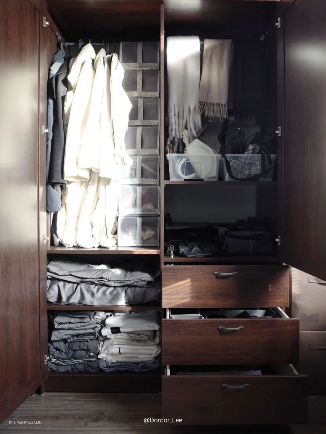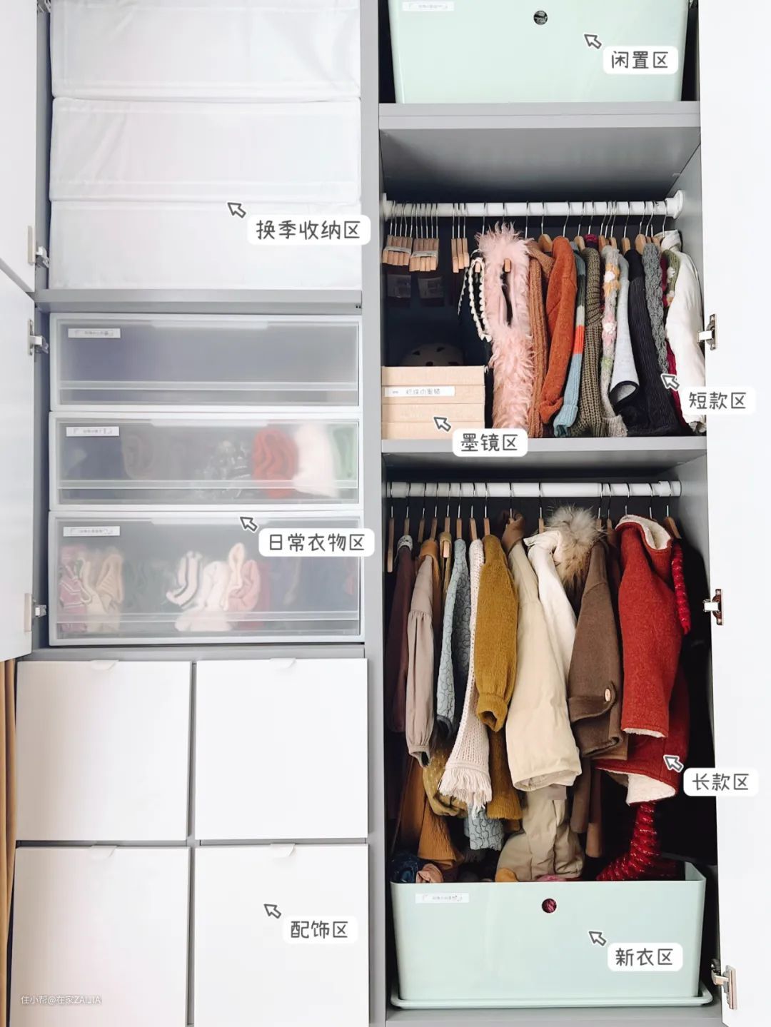 她按照每个人的身材和使用习惯灵活布局,摸索出了最适合的个性化分区和收纳配件。