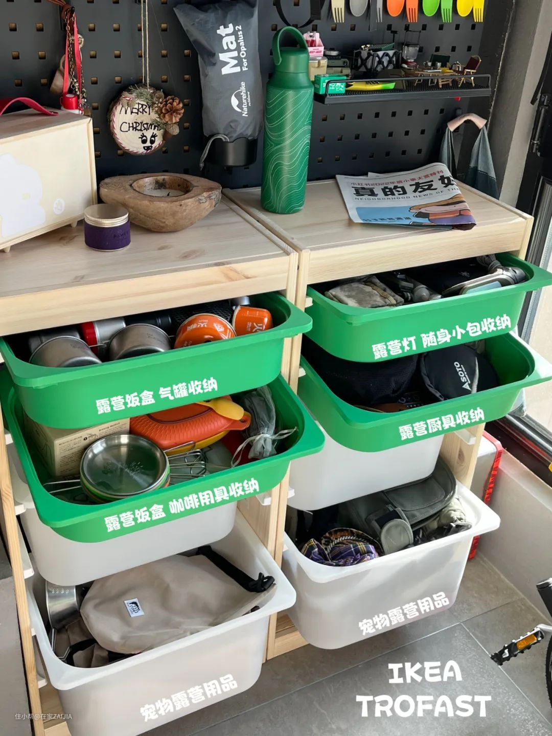 露营工具以及过年时收到的各种小礼物,都有了合适的归宿。平时也可以在上面做一些小手工、手帐。