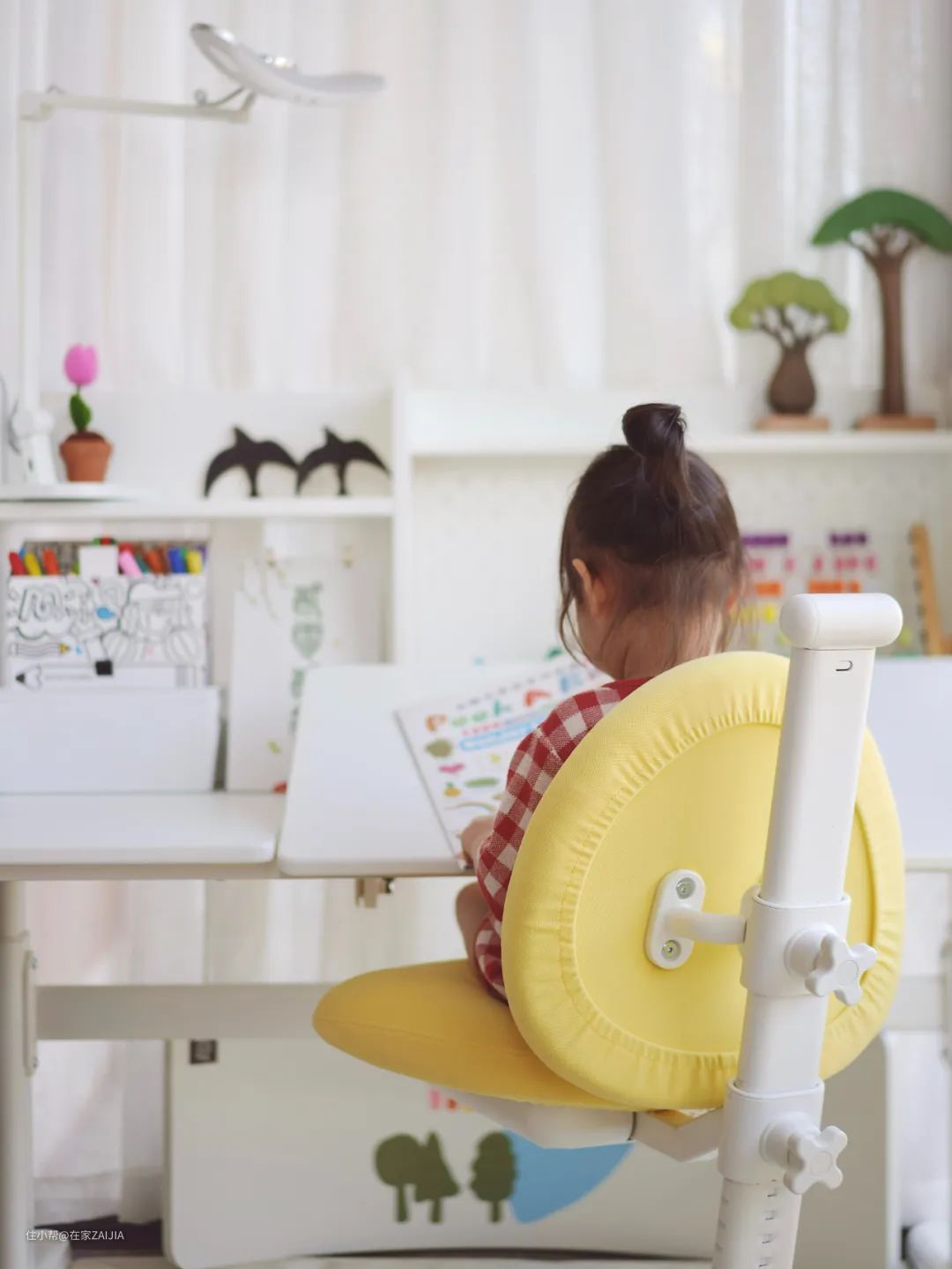 阳台的另一面,是儿童的学习角,完美塞进1.2m的学习桌,能调节高度和斜度,陪伴孩子一起长大。