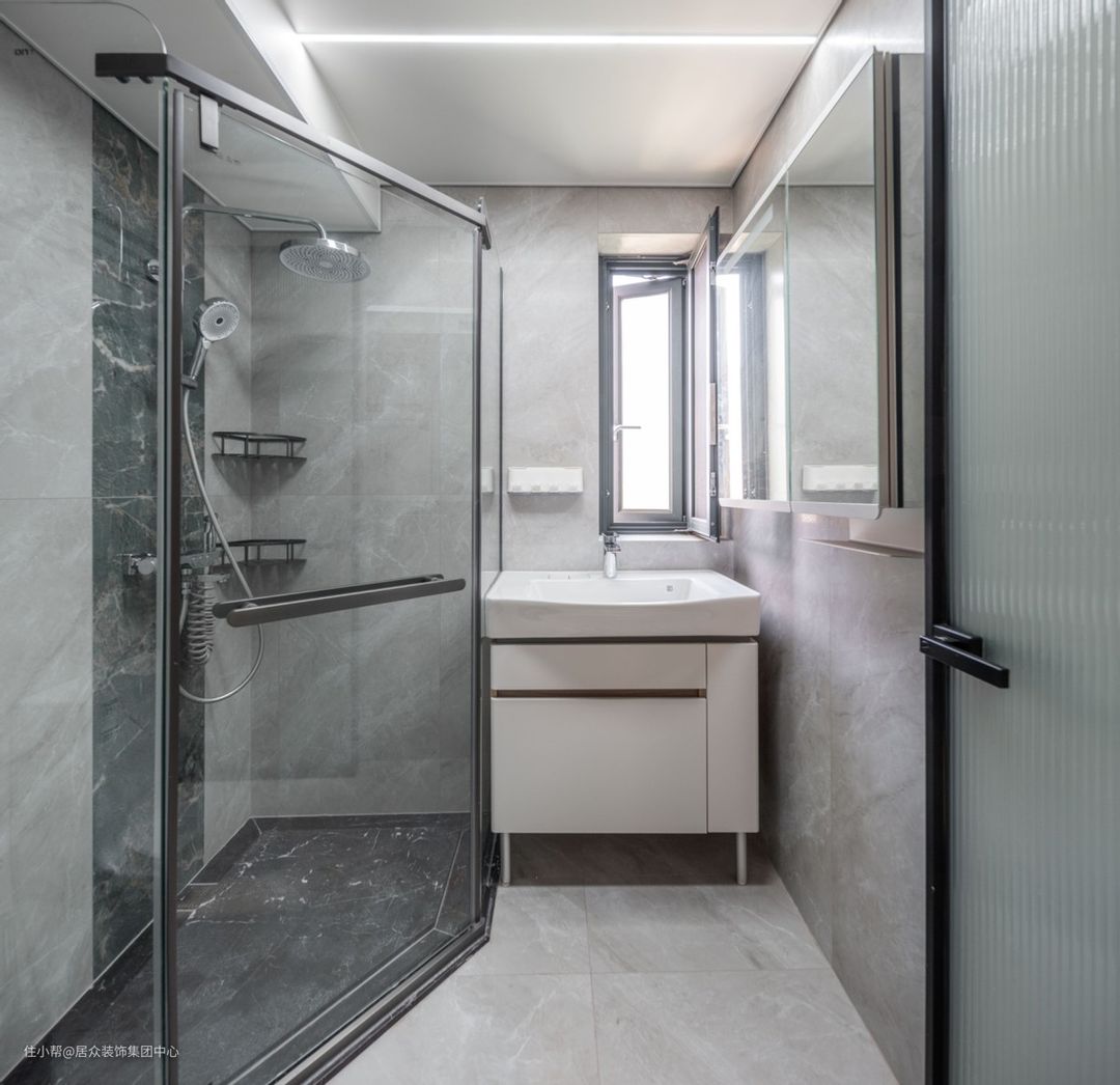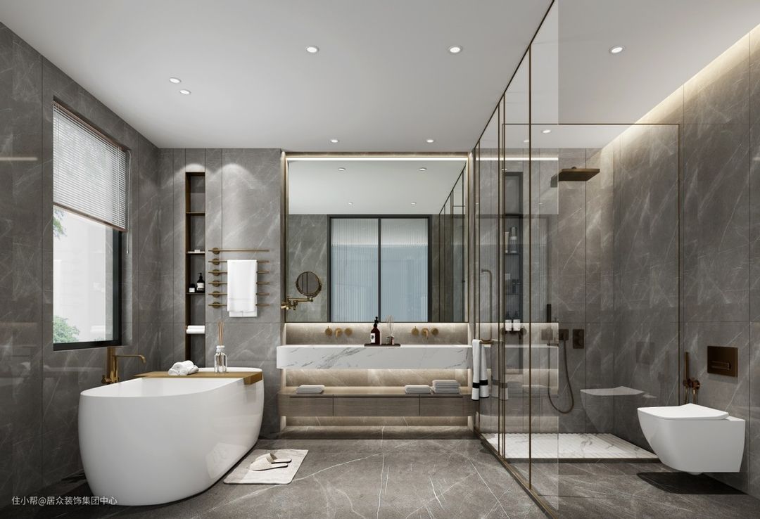 4.淋浴区不要再预埋石基或者做拉槽的大理石了,石基绊人,大理石不耐清洁用品的酸碱性。推荐淋浴区下沉两公分,大砖通铺,开槽做嵌入式玻璃才是真正的YYDS。