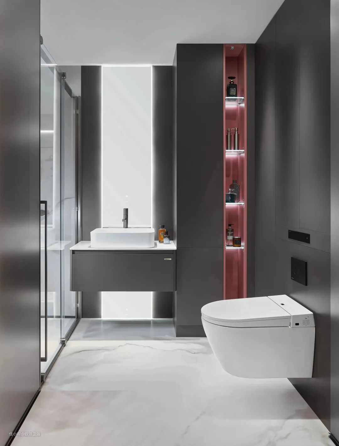 浴室中位区可以直观地看出整个空间的整洁程度,而整洁的台面会让人心情更佳。