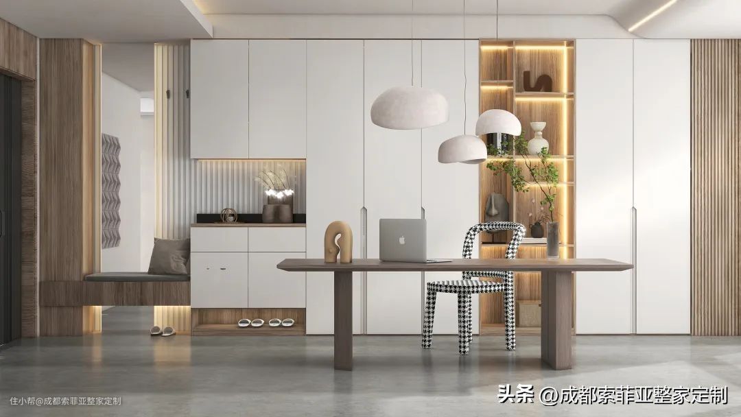 全屋整家定制采用索菲亚-赫本系列,以简雅的色系碰撞,将一种冷淡却又自然的风格。将家的温馨所展现,现代侘寂风以干净利落的设计风格,以有温度的原木色,将生活的轻松与美好描绘出对于未来的期许。