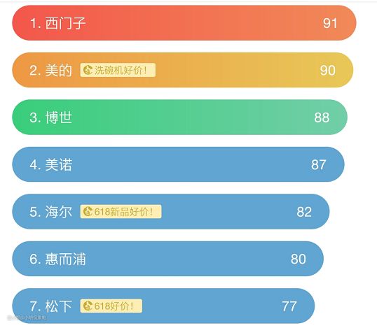 根据盖的品牌排行榜,美的紧跟西门子,是国内第一大洗碗机品牌。