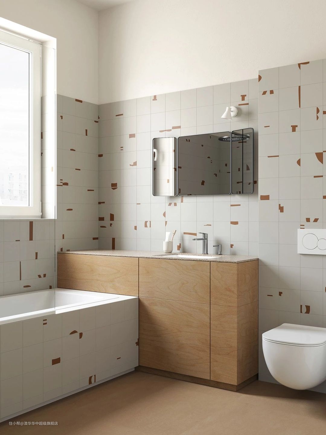 ③ 减少了卫生间的卫生死角。像传统的落地柜的边缘部都是卫生死角,很难打理。而墙排+陶瓷一体柜就避免了这种情况。