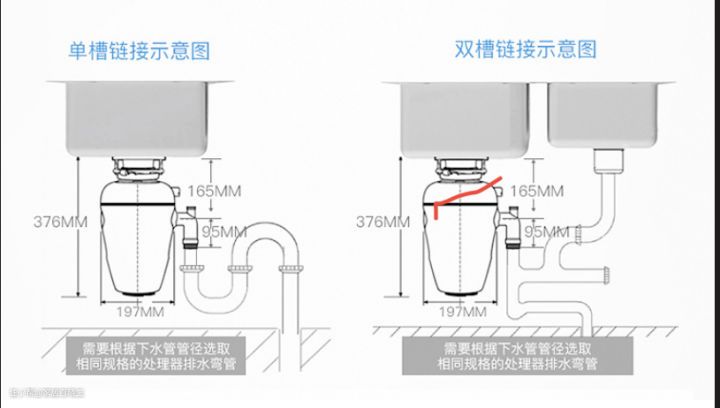 要安装空间:市场大部分机型的高度在300-430mm左右,水槽底部到橱柜底部的距离至少在400mm以上。考虑到排水管设置问题,水槽距离主排水管不能太远,1000m以内较为适宜,这样垃圾处理器的水压力才能更好的将垃圾压入主排水管。