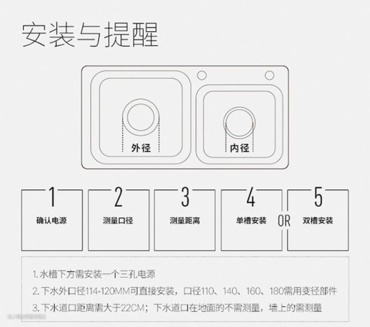 水槽口径:台盆中间圆孔的内径要求90mm,外径114mm。