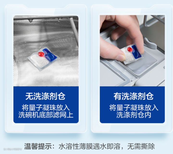 6套及以下容量的洗碗机建议购买洗碗块或者洗碗凝珠。