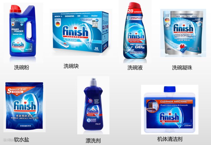 洗碗机用到的洗涤剂包括洗碗粉、洗碗块、洗碗液和洗碗凝珠。
