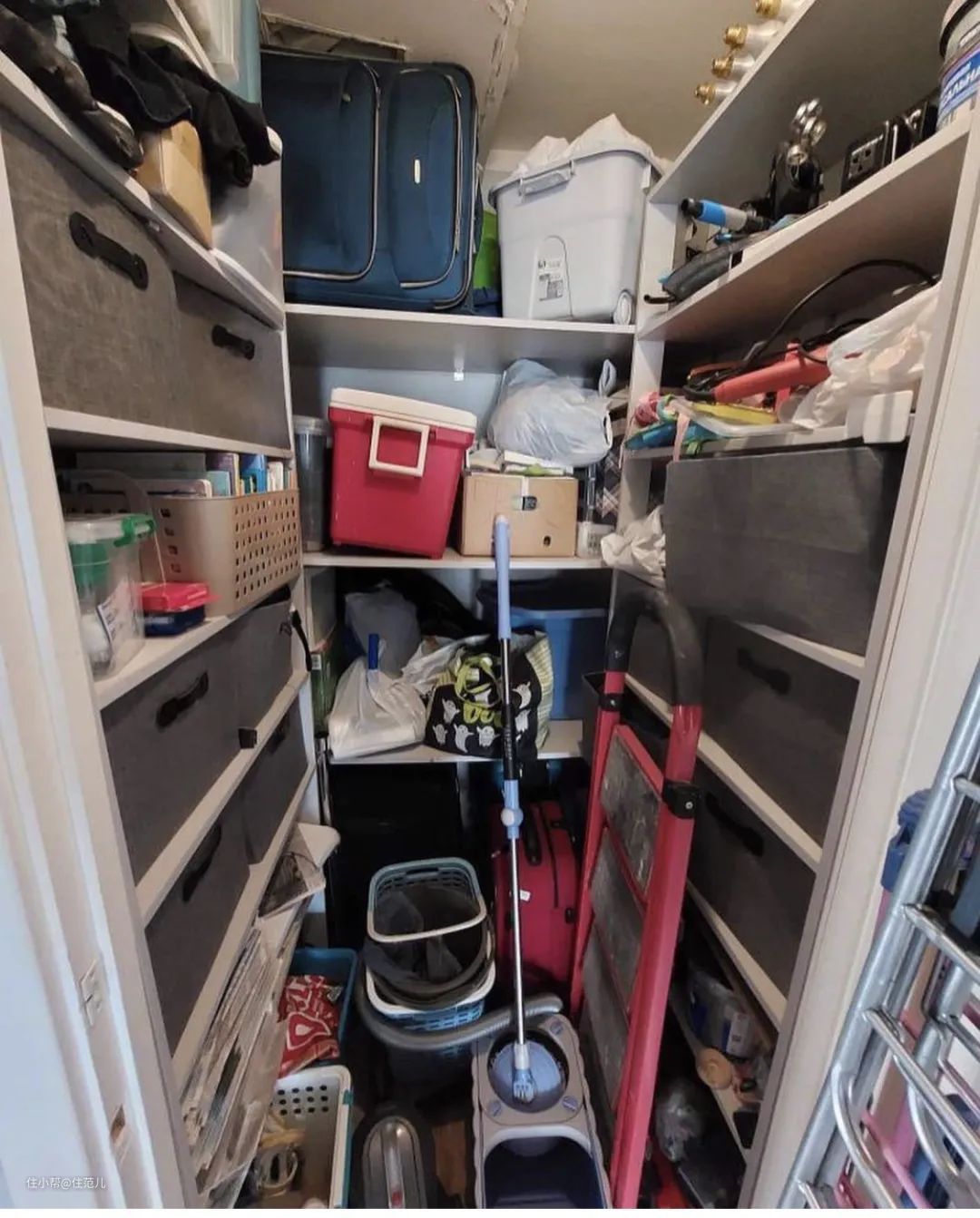 ▼虽然这个乱的有点夸张,但也说明储藏室很能装