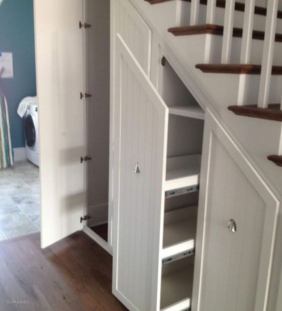 国外的一些案例中,大家会利用顶楼或者楼梯下方改造成储物间,也有单独拿出一间次卧或者卫生间(前提是家里有两个卫生间及以上)搞成储物间的。