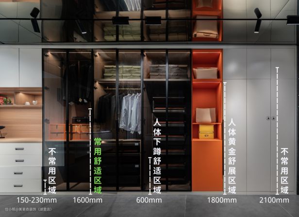 2100mm:不常用区(闲置被褥、抱枕收纳区)