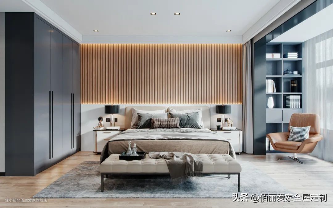 拥有立体造型的木格栅,一直是柜门、背景墙或护墙板常用的经典元素,运用范围非常广泛。木格栅以其错落有致的线条与饱满的视觉效果,受到现代风格与轻奢风格的青睐。