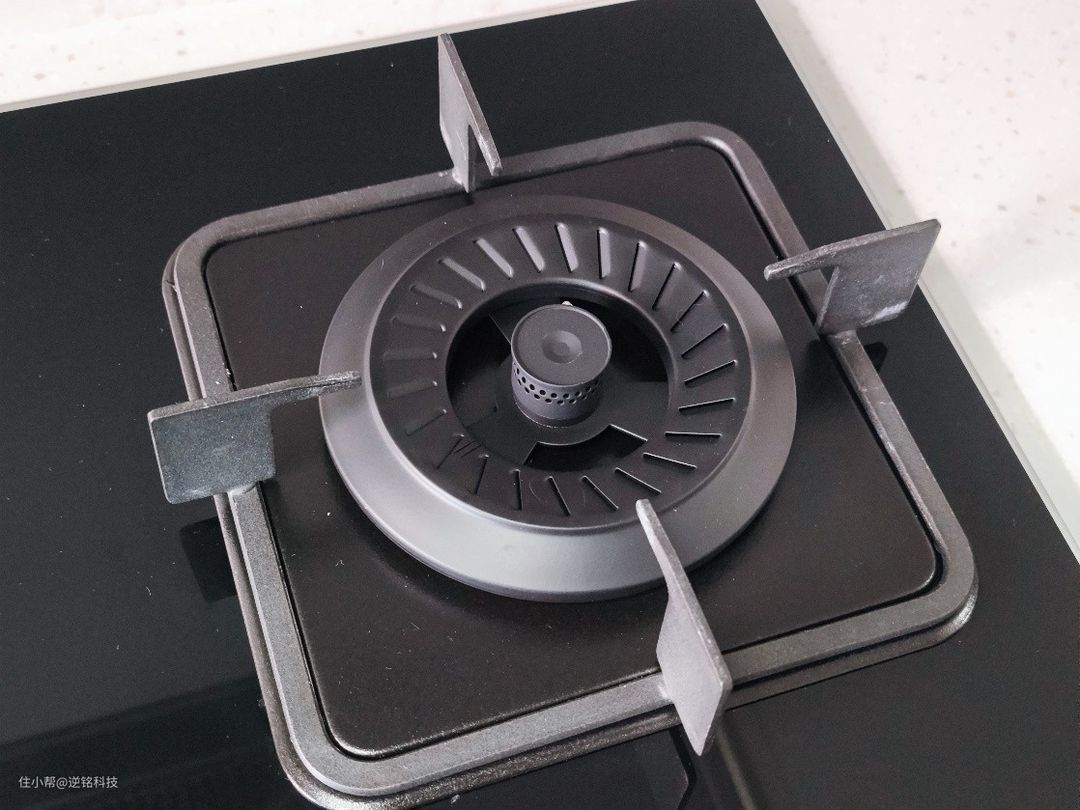 再来看看炉头,现在新出的燃气灶,炉头形态和以前有了很大的不同,以往的炉头,火都是从外面一圈气孔喷出来的,而美的Q36S的气孔呈现出螺旋状的排布,可以让火焰也螺旋输出,火力更集中的同时,抗风性能更强。