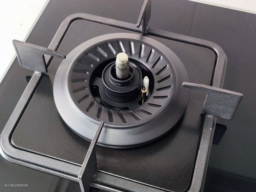 左边的炉头中央还有一个智能温感探头,这是防干烧功能的关键部件,右半边炉头没有这个探头,不支持防干烧功能,但是火力功率能达到5kw,比一般的燃气灶要更大一些,一边大火力,一边防干烧,可以根据需求来选择。