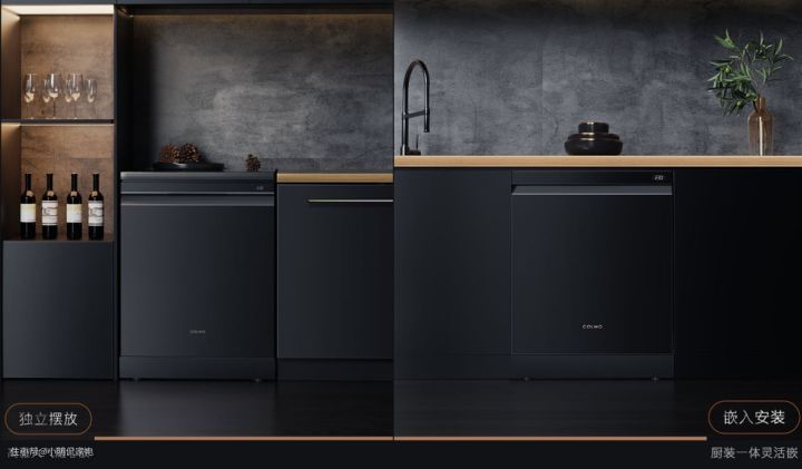 COLMO主要生产大容量嵌入式洗碗机,只有一款10套,其他的都是13套及以上的洗碗机。嵌入式洗碗机可以嵌入橱柜中,节省空间,更美观。