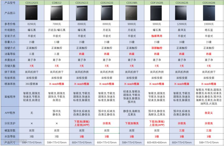 CDS12G03和CDB312是3级水效,其他型号都是1级水效。