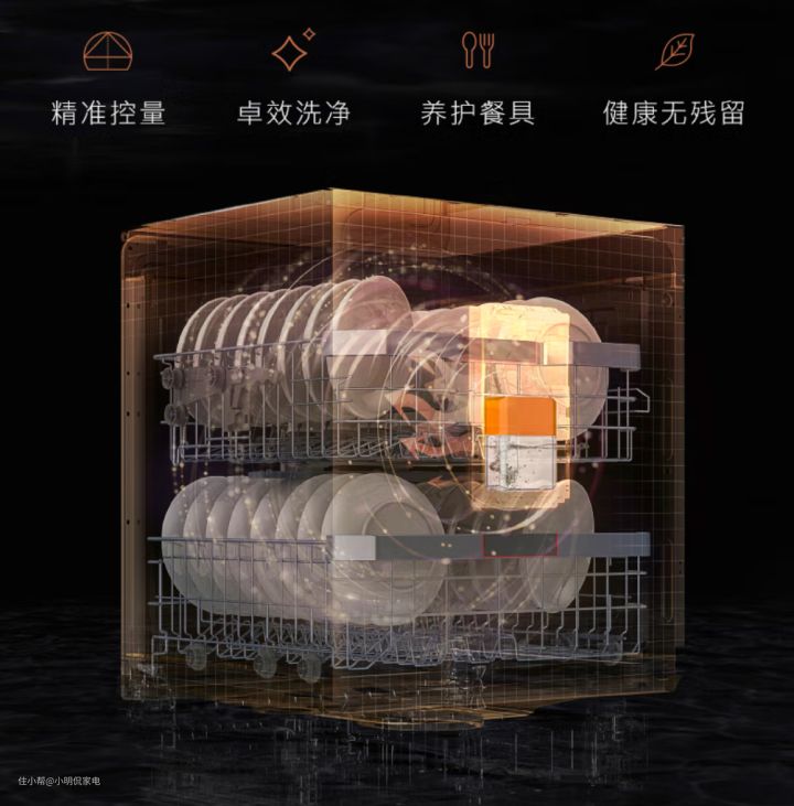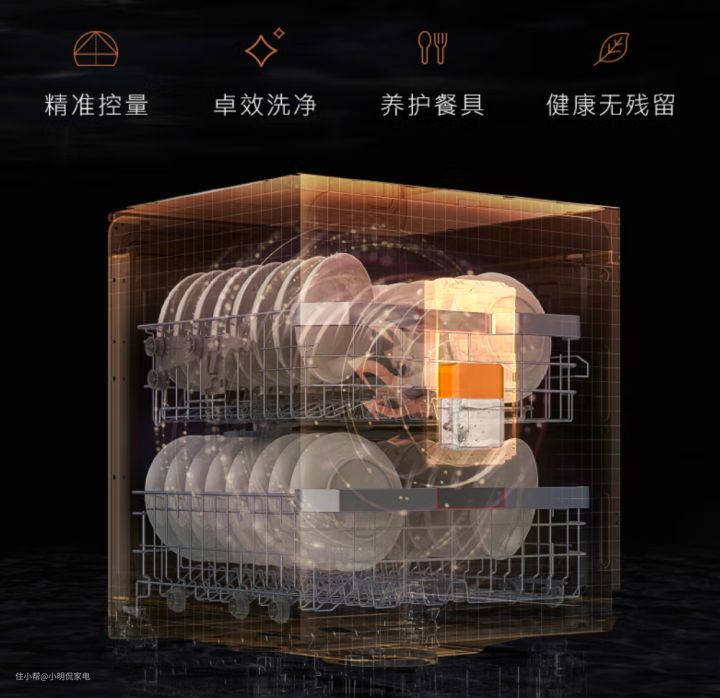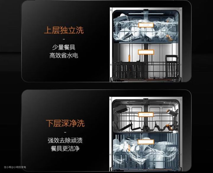 餐具少的时候,可以单独只开启一层,不仅节能,水压会更高,冲刷的更彻底。