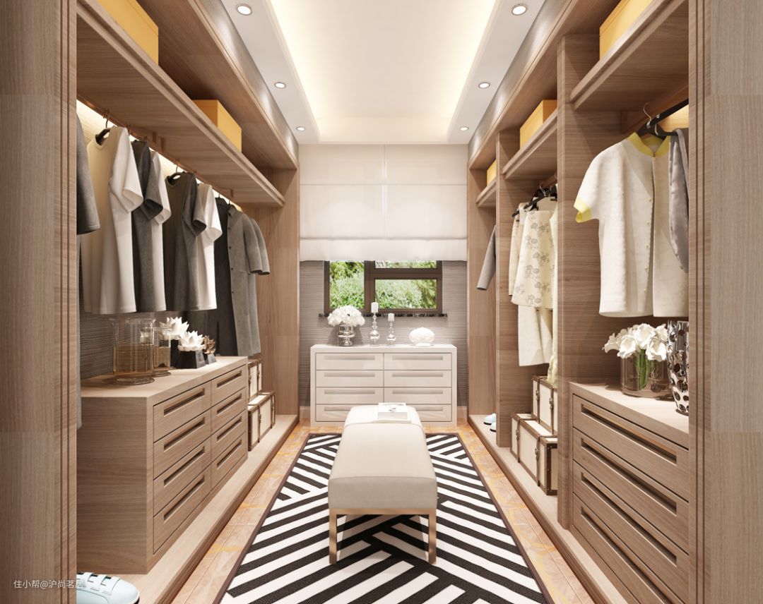 衣柜:可以多设置挂衣区,少设置叠衣区,叠衣区拿衣服不方便还容易显乱,把衣服挂起来拿取也更方便,还不容褶皱。