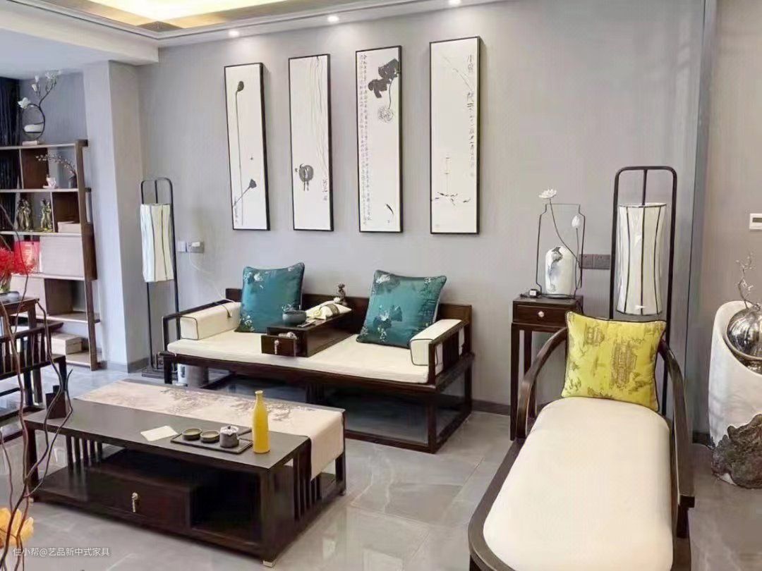 新中式风格的家“重”在细节,“美”在效果,追求极致,简约大气的新中式客厅,沙发的设计尽显中式古典气质,雅致大方,于细微之处彰显品味,客厅的贵妃椅,以素简的素简语言,赋予了空间难以言喻的诗意之美,客厅摆放的家具使整体空间更加丰富,有格调又不显压抑的效果。
