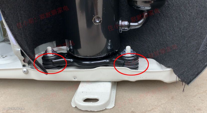 压缩机底部带有减震胶垫,晃动压缩机脚垫会跟着活动,作用也是避免压缩机高频运行时把振荡传导到外壳上出现噪音。