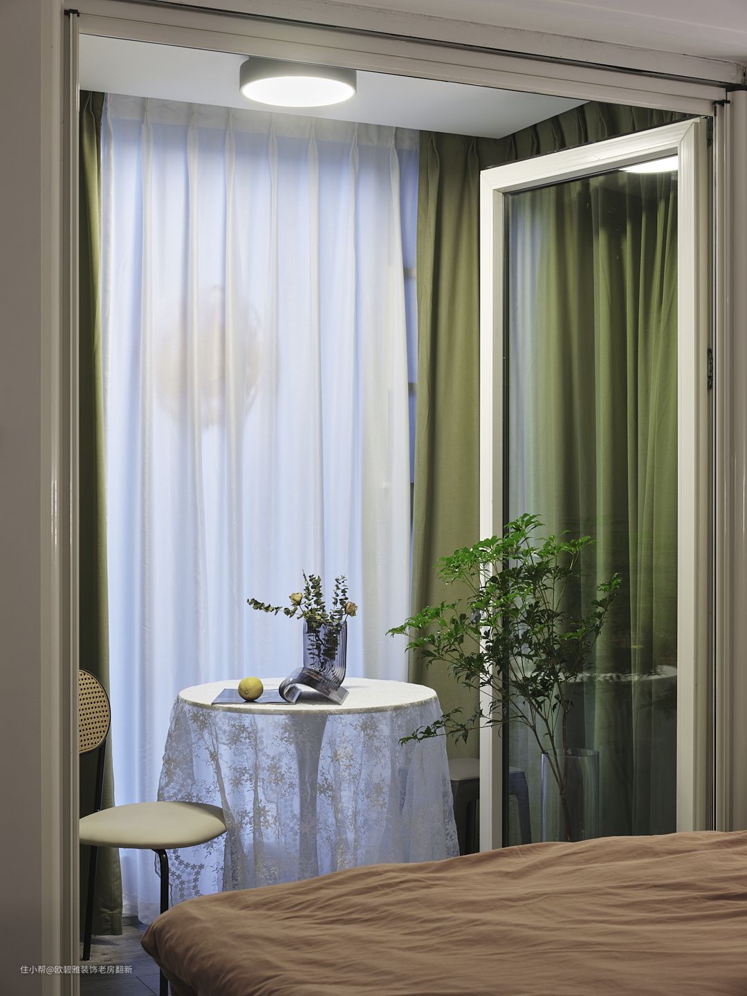 没有什么大的挑战,工期比较紧张吧,因为需要空置的时间比较长。 为了满足客户的个性化需求,你在设计过程中做了哪些事情? 卧室的阳台的设计就是按照女业主需求设计的,将原来的晾晒区取缔掉,做了单独的休憩区。