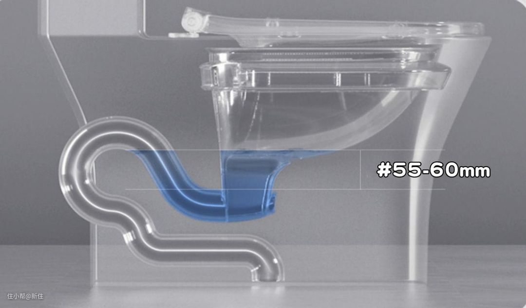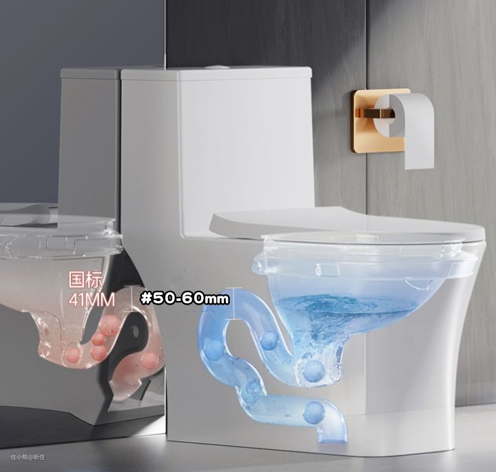 所以,一般建议管径就选50-60mm这个范围内,这也是目前主流品牌的管径尺寸,可千万别被一些杂牌马桶的90mm大管径给忽悠了。