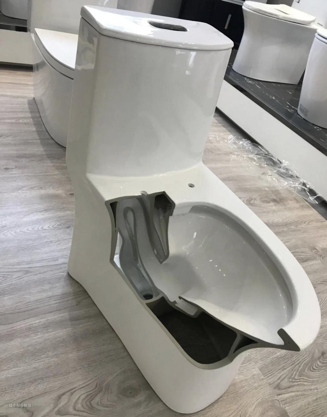 市面上有一些坑人的马桶,只有肉眼可见的施釉,排污管道不施釉,长久用下去势必会导致,管道内壁附着污垢,造成堵塞的问题。