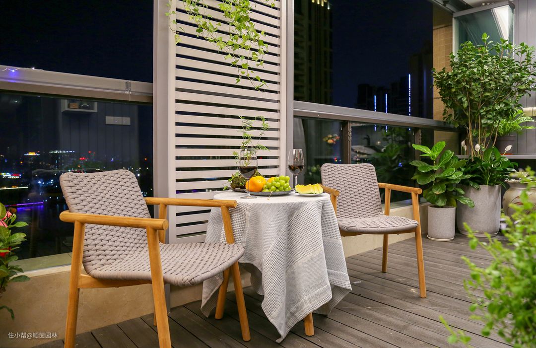 最后加上灯饰、小桌椅、儿童摇椅这些,就能在午后的阳台上惬意的看书了,晚上吃点水果喝点红酒,欣赏着珠江的夜景,与朋友或爱人畅谈人生梦想,享受自由自在的生活。