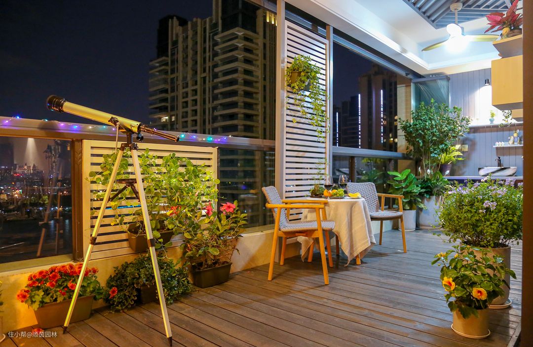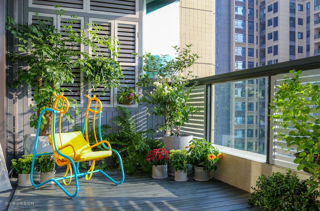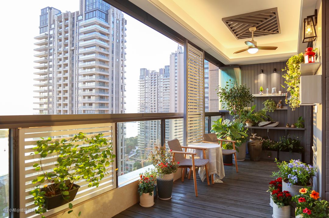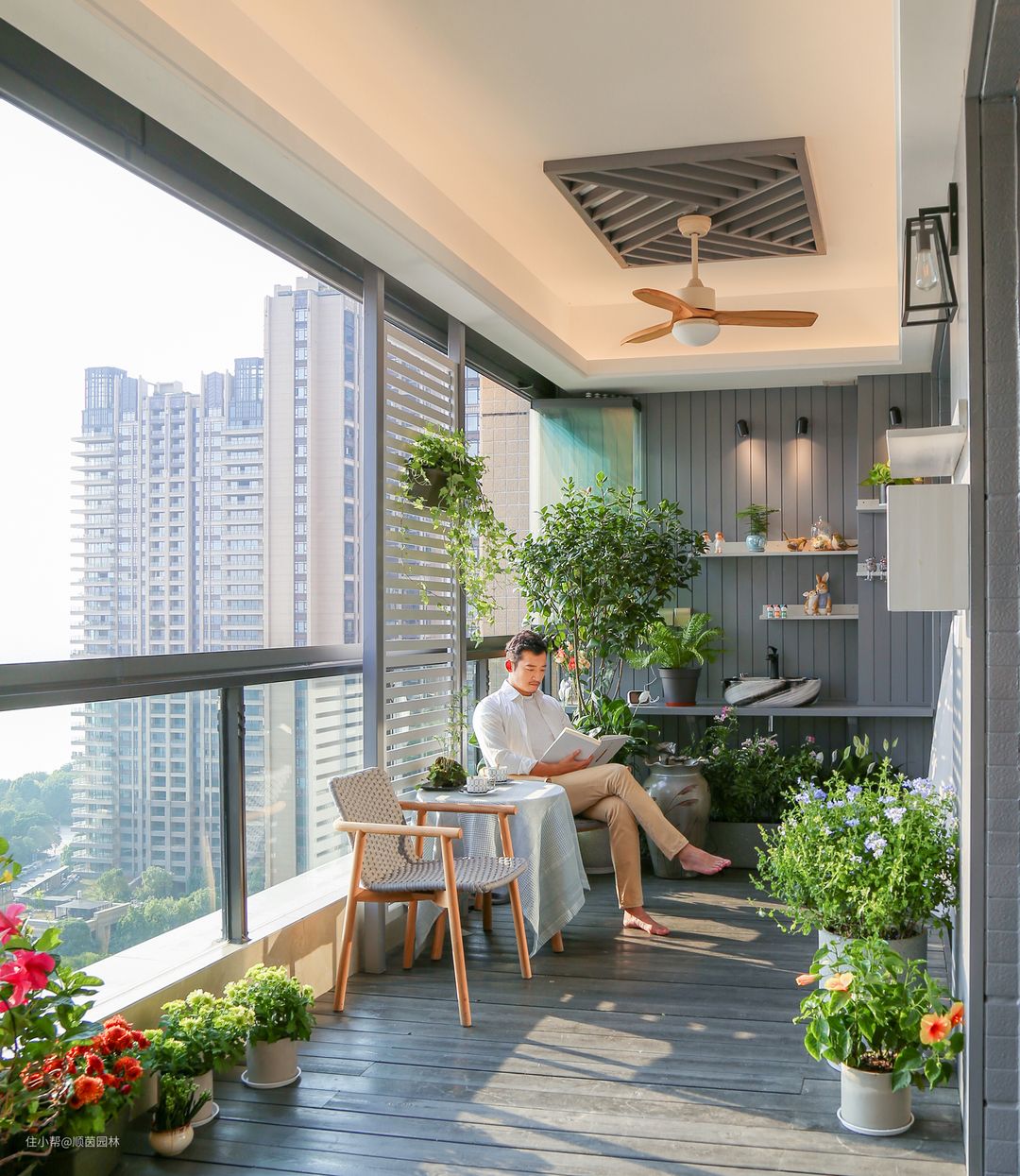 挑选了很多房主喜欢的绿植,同时也在不同的墙面设置了洗手台、置物架、格珊挡板以及活动门页,让阳台的整体格局更加美观实用,最后将绿植以及饰品等进行简单布置,阳台就成了一个理想的花园休闲区了!