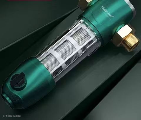 首先就是用于粗过滤的前置过滤器,像这种长的像小炮弹一样的就是反冲洗的前置过滤器,网上有人说它是智商税,也有人说它特别香,它的滤芯啊,就是金属丝网,过滤精度一般是40到100微米,好处就是完全不用换滤芯,肯定省事儿又省钱。缺点就是只能过滤掉泥沙、铁锈等大的杂质和颗粒物,所以过滤的能力啊比较初级。,这种过滤器安装在入户水管的最前端,对你来说主要的作用。洗漱、洗菜、做饭之类的生活用水有所改善,让后面饮水机的滤芯呢更换的频率稍微降低一点,如果你家本身的水质就挺好,那就完全没必要花这冤枉钱,毕竟不是必需品,价值也有限。如果你家水质还可以,只是偶尔会有一些泥沙之类的颗粒物的话,那装个反冲洗的前置就非常合适。