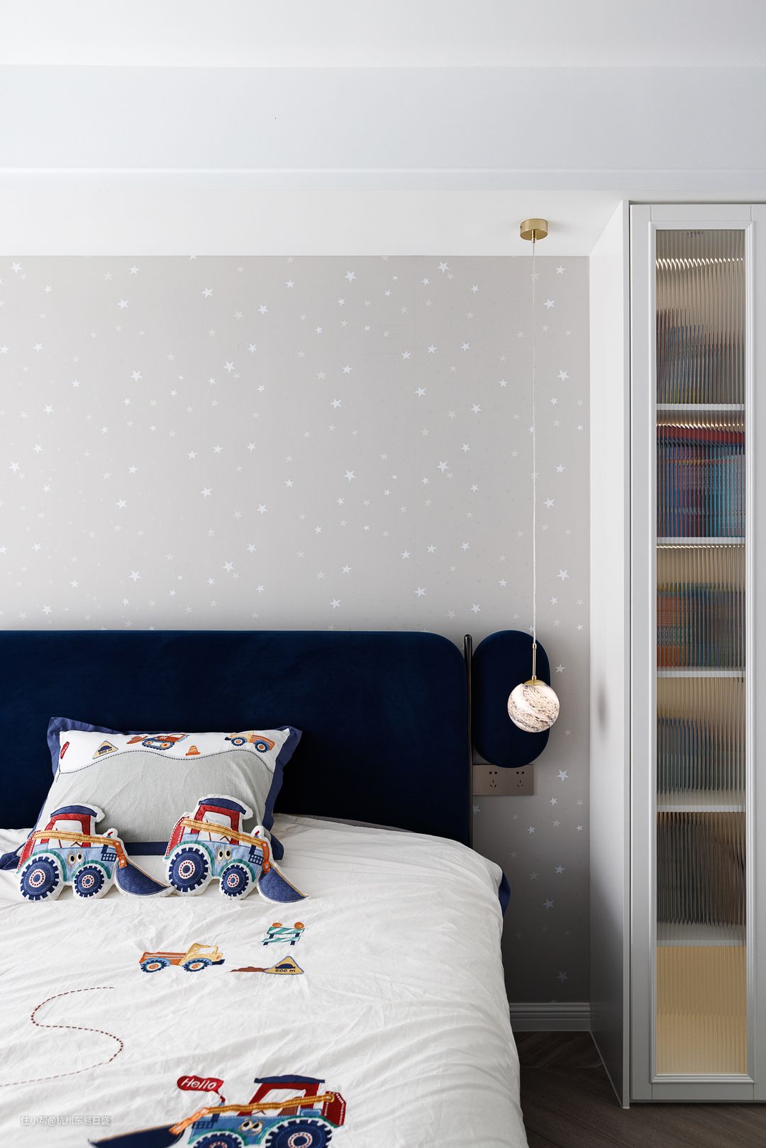 蓝幽幽、白晃晃的玩具收纳柜,是至此见过的最贴合孩子个性的家具,简约洁净的外表与周围融洽贴合,搭配舒适可爱的懒人沙发、星系毛绒圆毯,在畅玩中感受来自家的温暖守护。