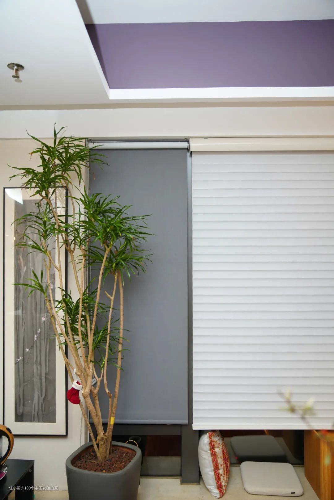 就像之前她提过自家楼下有一片小森林,那天我特意走到窗前,低头一看,哇,真的有!这就不得不提设计师的小心思,她家每扇窗都精心设计了遮帘。▼