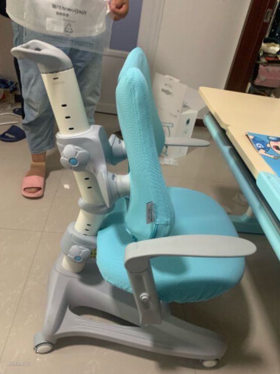 它配备的学习椅采用的是分程式三向追背调节,能够贴合脊椎的曲线,避免脊椎悬空导致酸痛感。孩子平时学累了往后一仰,也能够稍微放松一下。